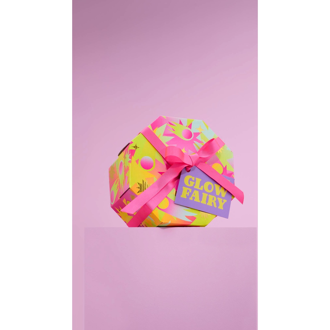 Lush Gift Designer Grace Cole, says “I wanted to create a design based on the idea of a glowing fairy surrounded by comets and stars. I love how the neon gradients make it feel otherworldly and full of cosmic magic.”